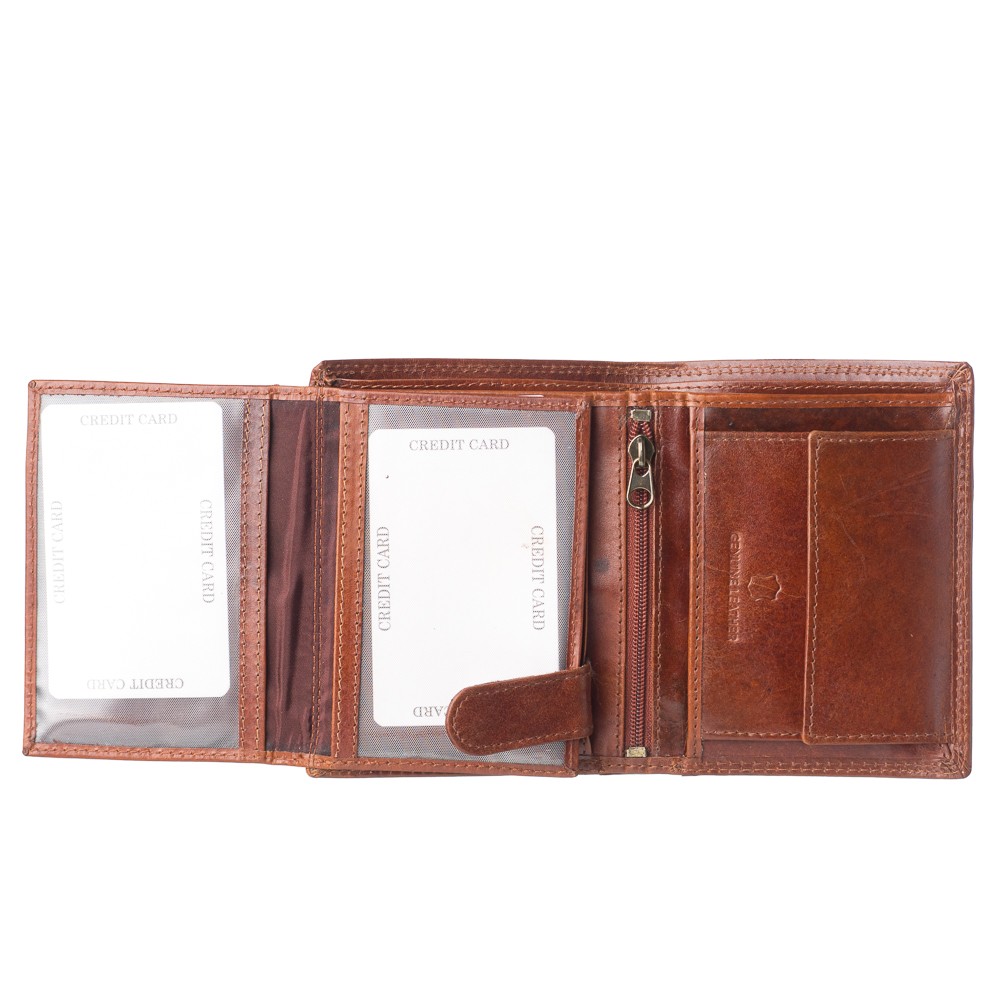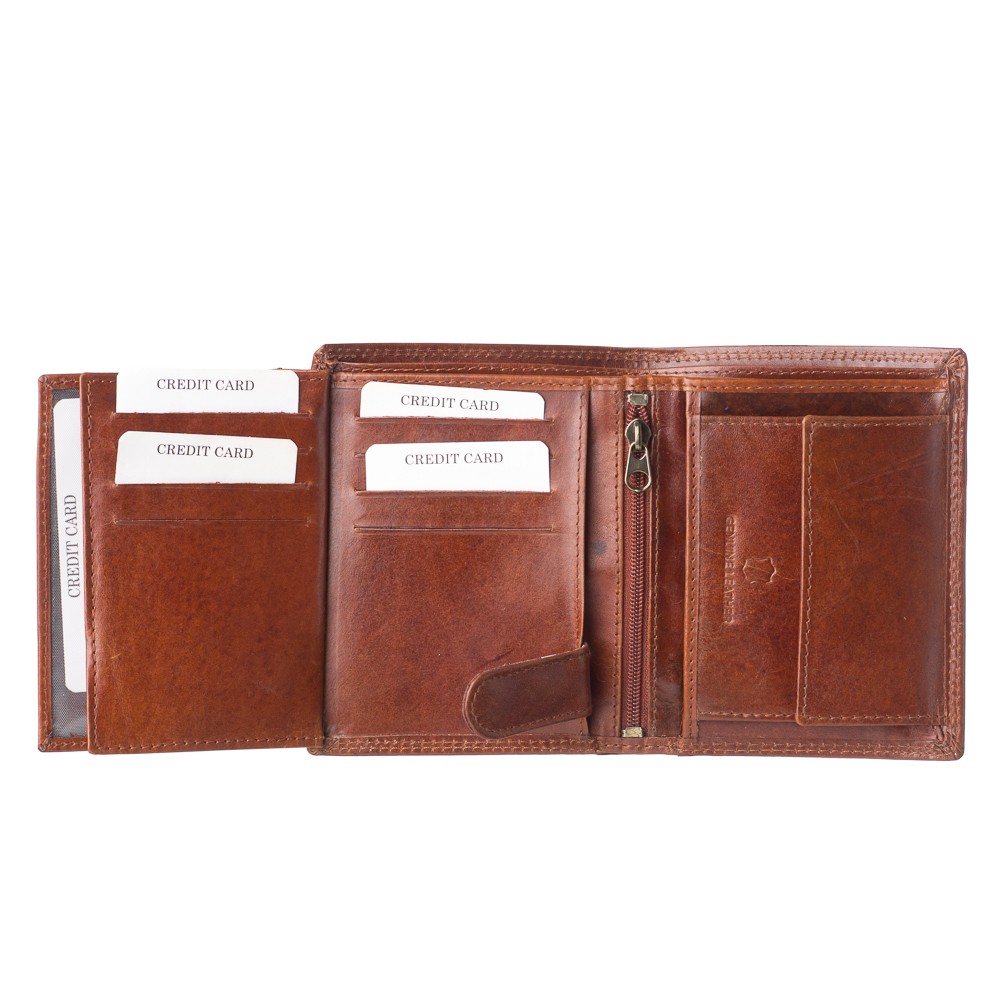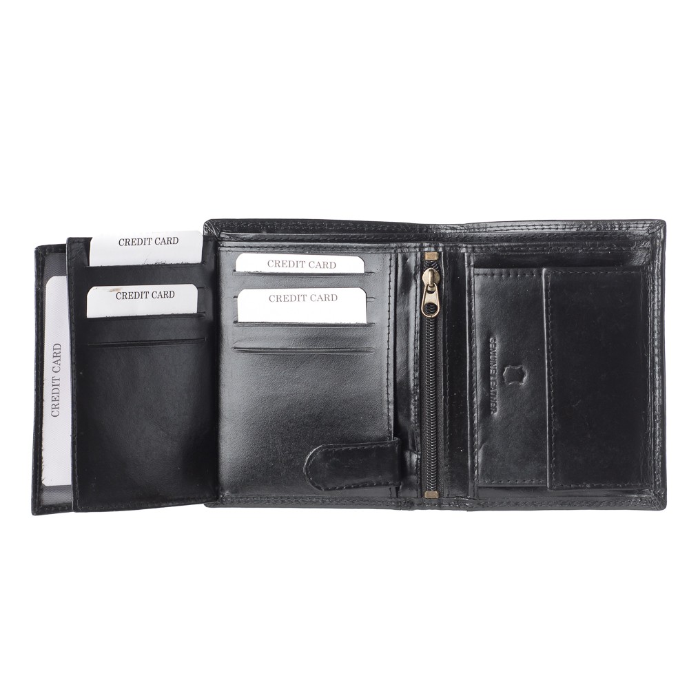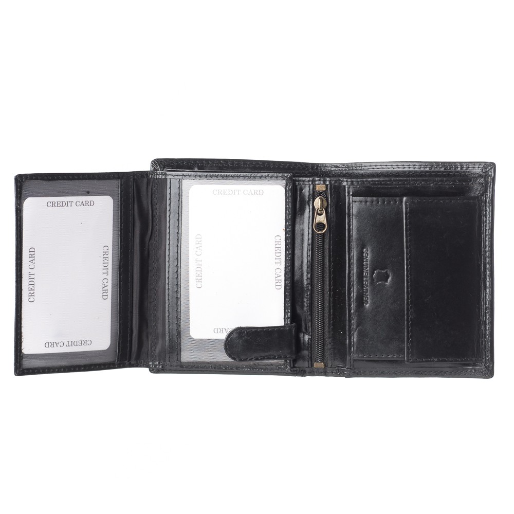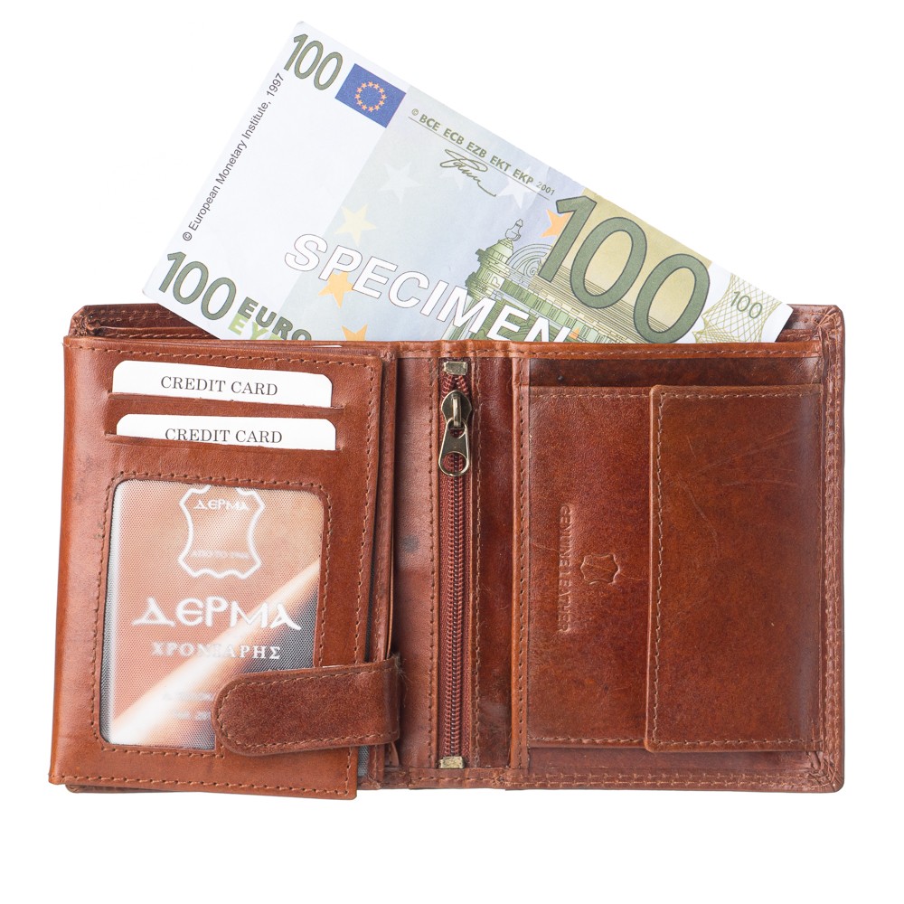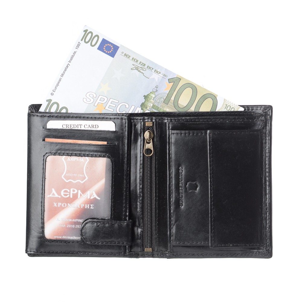 Ανδρικό πορτοφόλι, Ιταλικής προέλευσης, διαστάσεων 12 x 9.5 (ΜxΥ), σκληρό δέρμα, δύο θέσεις για χαρτονομίσματα,10 θήκες για κάρτες,θεσεις πίσω από τις θήκες καρτών ιδανικές για αστυνομική ταυτότητα, τρεις διαφάνειες για φωτογραφίες - δίπλωμα, θέση στο κέντρο με φερμουάρ,εσωτερικό κούμπωμα με τρουκ, θήκη για κέρματα -ασφαλίζει με μεταλλικό κούμπωμα- κρυφή θέση πίσω από την θήκη για κέρματα, διατίθεται σε κουτί δώρου.