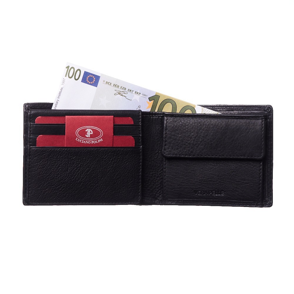 Ανδρικό πορτοφόλι LUCIANO POLINΙ, Ιταλικής προέλευσης, διαστάσεων 11 x 9 (ΜxΥ), μαλακό δέρμα , δύο θέσεις για χαρτονομίσματα, 7 θήκες για κάρτες, θέση πίσω από τις θήκες καρτών, θήκη με διαφάνεια για φωτογραφίες ή δίπλωμα, θήκη για κέρματα -ασφαλίζει με μεταλλικό κούμπωμα- κρυφή θέση πίσω από την θήκη για κέρματα, σήμα LUCIANO POLINI μπροστά, διατίθεται σε κουτί δώρου.