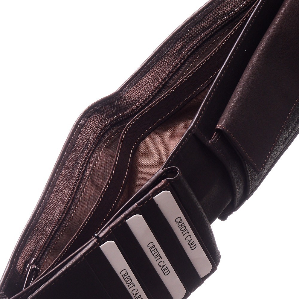 Ανδρικό πορτοφόλι LUCIANO POLINΙ, Ιταλικής προέλευσης, διαστάσεων 12 x 10 (ΜxΥ), μαλακό δέρμα, τρεις θέσεις για χαρτονομίσματα η μία ασφαλίζει με φερμουάρ, 11 θήκες για κάρτες, θέσεις πίσω από τις θήκες καρτών ιδανικές για αστυνομική ταυτότητα, θήκη με διαφάνεια για φωτογραφίες ή δίπλωμα, θήκη για κέρματα -ασφαλίζει με μεταλλικό κούμπωμα-  δύο θέσεις πίσω από την θήκη για κέρματα, ασφαλίζει με μεταλλικό κούμπωμα, σήμα LUCIANO POLINI μπροστά διατίθεται σε κουτί δώρου.