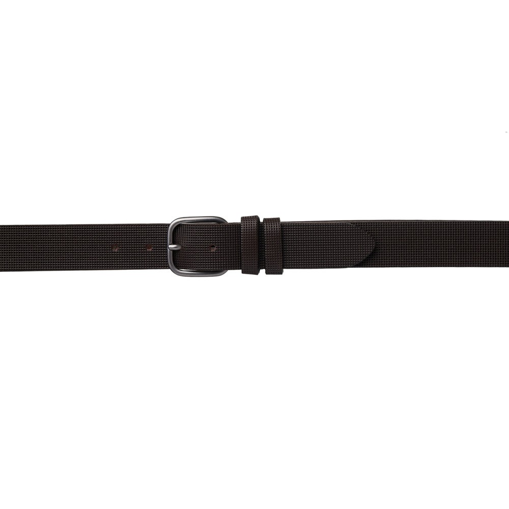 Ανδρική δερμάτινη ζώνη ιταλικής κατασκευής με ανάγλυφη υφή και ματ αγκράφα, που συνδυάζει μοντέρνο σχεδιασμό με διαχρονικό στυλ. Κατασκευασμένη από υψηλής ποιότητας γνήσιο δέρμα, προσφέρει ανθεκτικότητα και άνεση στη χρήση. Το πλάτος της 3,5 cm την καθιστά ιδανική για καθημερινή χρήση με jeans, chinos ή υφασμάτινα παντελόνια, ενώ το μονοκόμματο δέρμα και η διπλή θηλιά εξασφαλίζουν σταθερότητα και άψογη εφαρμογή. Ιδανική επιλογή για όσους θέλουν ένα στυλ που ισορροπεί τέλεια ανάμεσα στο casual και το επίσημο.