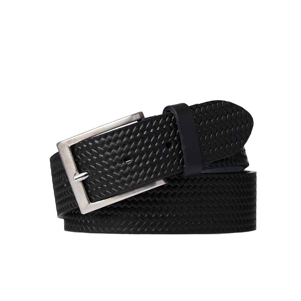 Ανδρική δερμάτινη ζώνη ιταλικής κατασκευής, μονοκόμματο δέρμα πλάτους 3,5εκ., σχεδιασμένη με πλεκτή όψη για πιο ιδιαίτερο και μοντέρνο χαρακτήρα. Δεν διαθέτει ραφές, έχει μεταλλική αγκράφα σε ματ ασημί απόχρωση, η οποία ταιριάζει εύκολα με casual παντελόνια, τζιν και chinos. Πρακτική για καθημερινή χρήση, ιδανική για όσους θέλουν μια ζώνη με διακριτικό στιλ χωρίς υπερβολές.