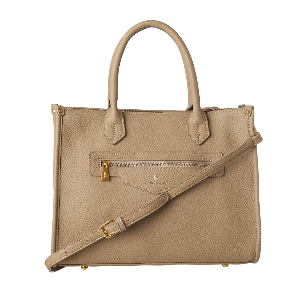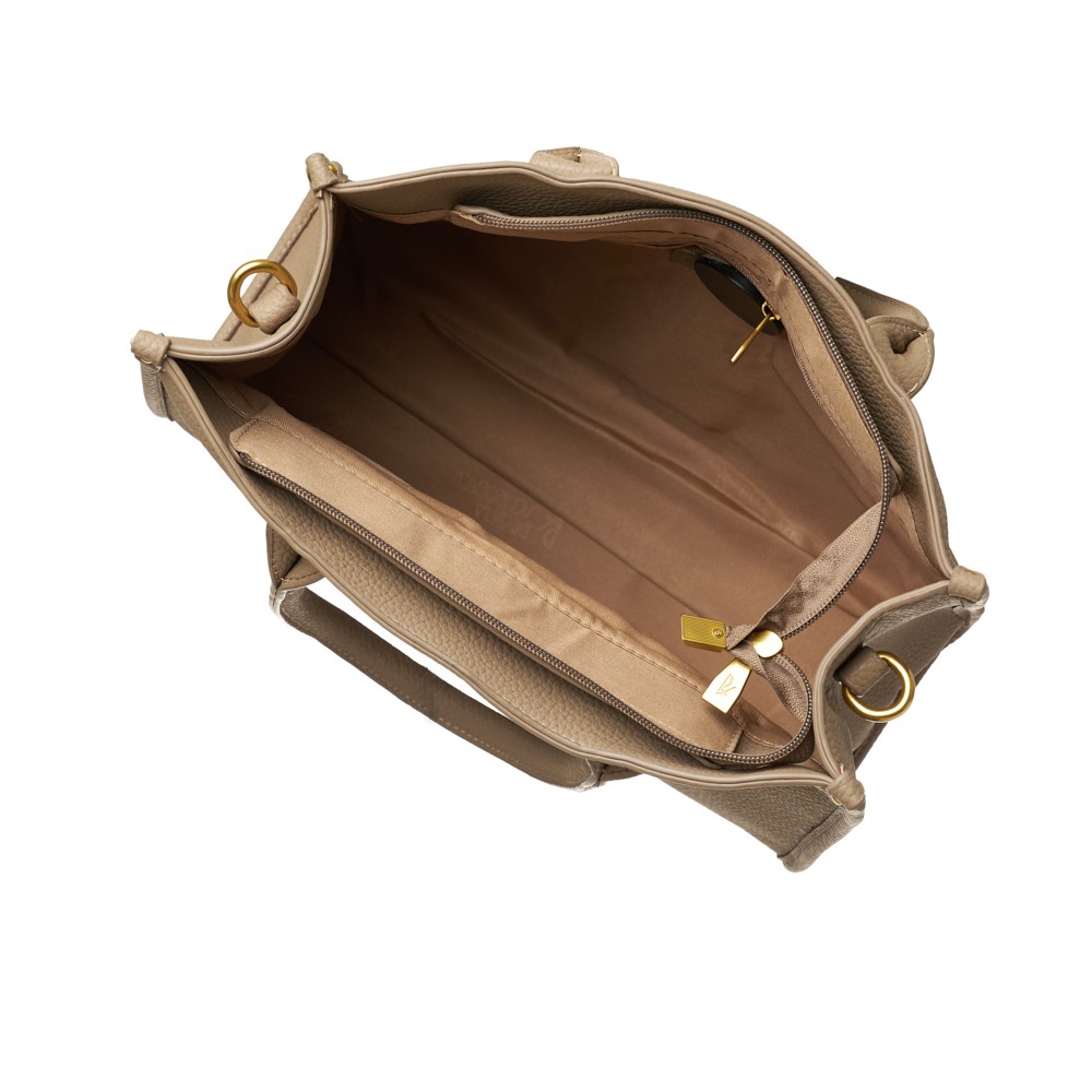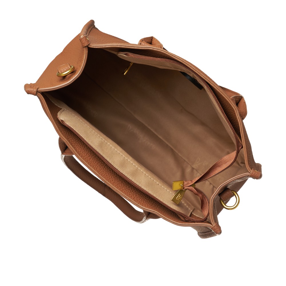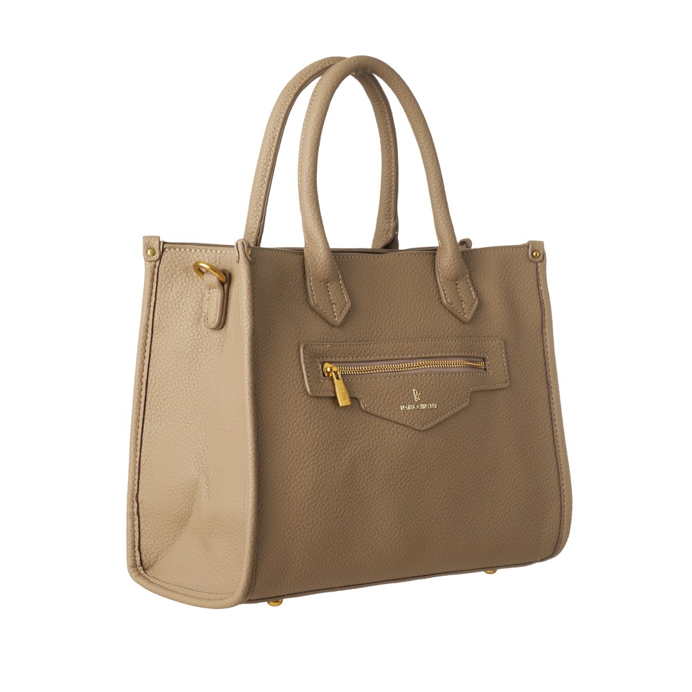 Γυναικεία συνθετική τσάντα χειρός, Ιταλικής προέλευσης, διαστάσεων 32,5 x 10,5 X 25 (ΜxΠxΥ), εξωτερική τσέπη μπροστά που ασφαλίζει με φερμουάρ, μία κυρία θέση που ασφαλίζει με φερμουάρ, εσωτερική πίσω τσέπη που ασφαλίζει με φερμουάρ, θέση για κινητό και μικροαντικείμενα, υφασμάτινη φόδρα, δύο χερούλια για κράτημα στο χέρι, αφαιρούμενος και ρυθμιζόμενος ιμάντας για κράτημα στον ώμο ή χιαστί.