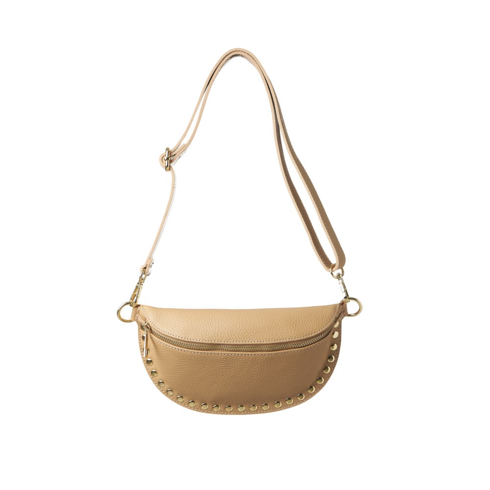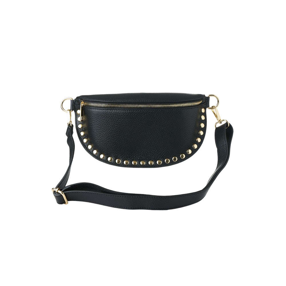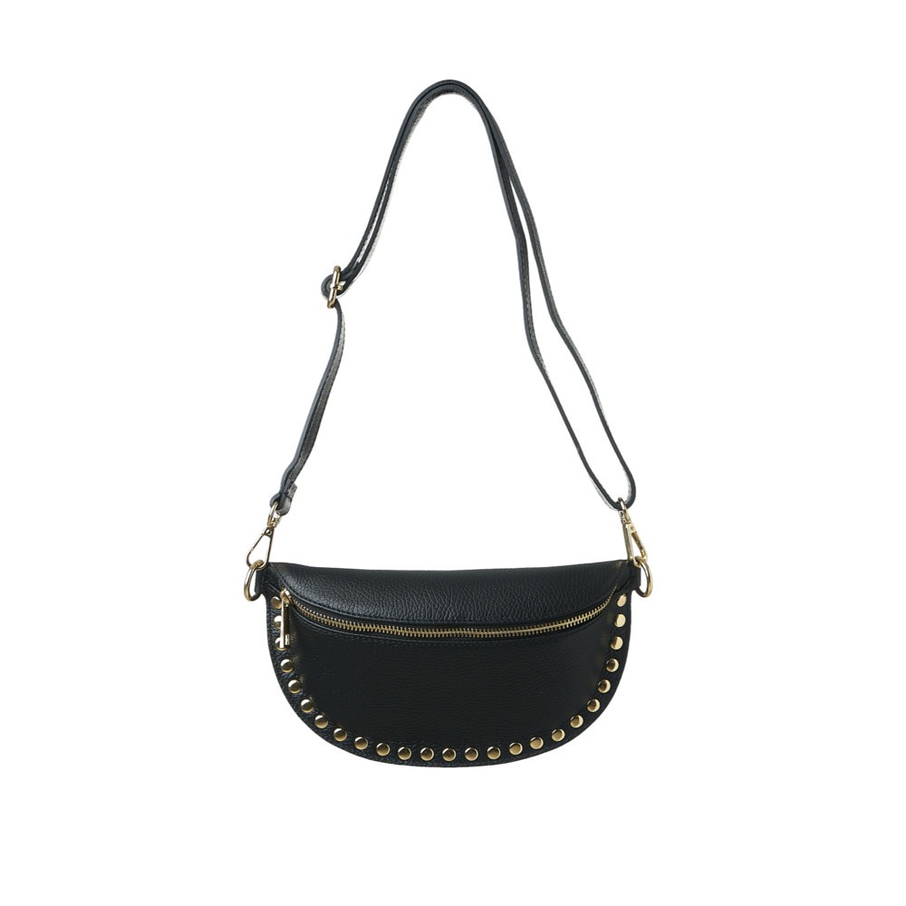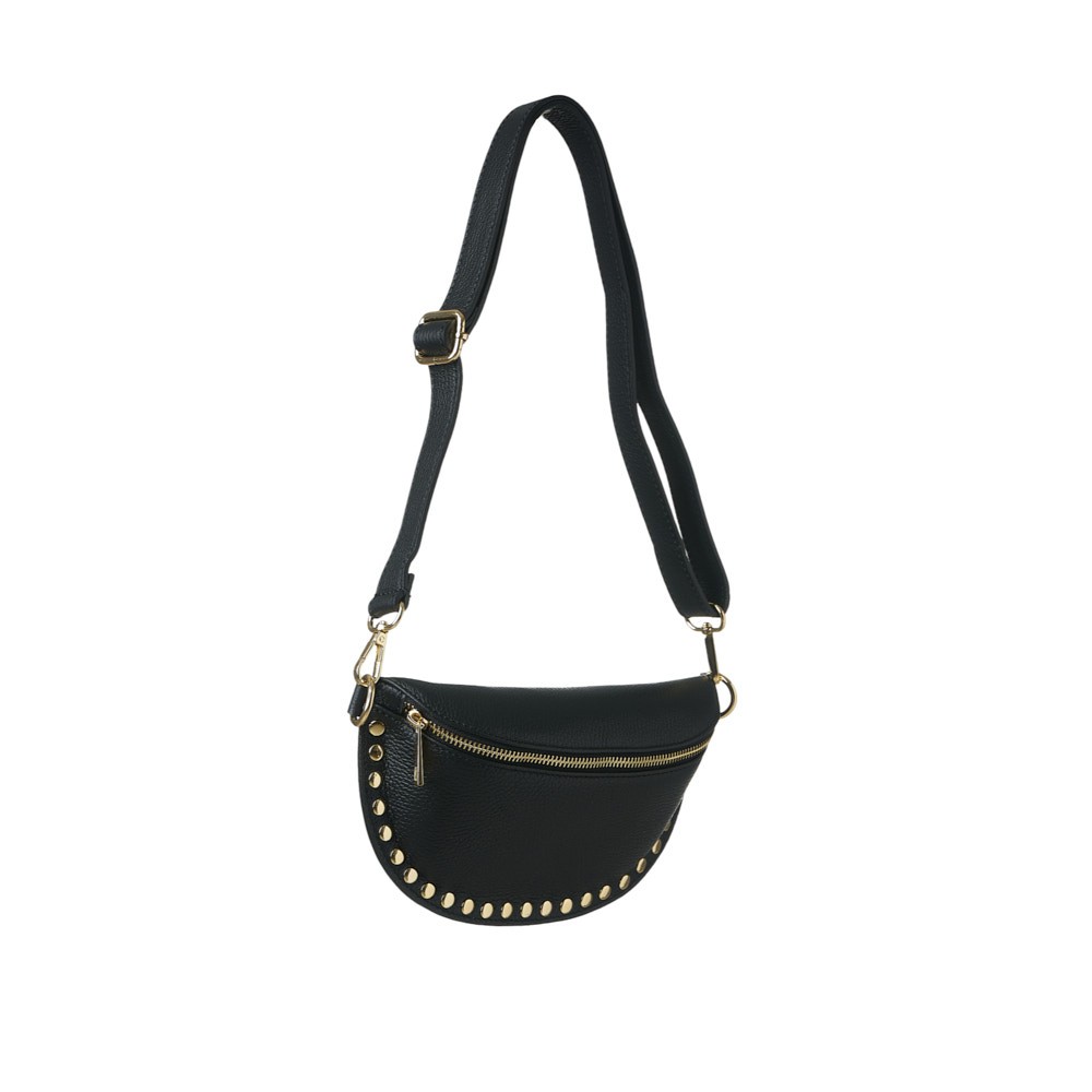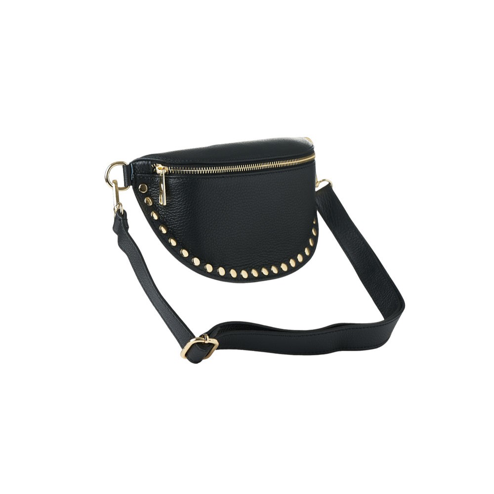 Γυναικεία δερματίνη τσάντα μέσης, Ιταλικής κατασκευής, με μοντέρνο και πρακτικό σχεδιασμό. Με διαστάσεις 26 x 6 x 14 εκ. (Μήκος x Πλάτος x Ύψος), διαθέτει μία κύρια θέση που ασφαλίζει με φερμουάρ, εσωτερική τσέπη για μικροαντικείμενα και υφασμάτινη φόδρα στο εσωτερικό. Ο αποσπώμενος και ρυθμιζόμενος ιμάντας (μήκους 60 έως 110 εκ.) επιτρέπει πολλαπλές επιλογές φορέματος – είτε χιαστί είτε στη μέση, ανάλογα με το στυλ και τη στιγμή.