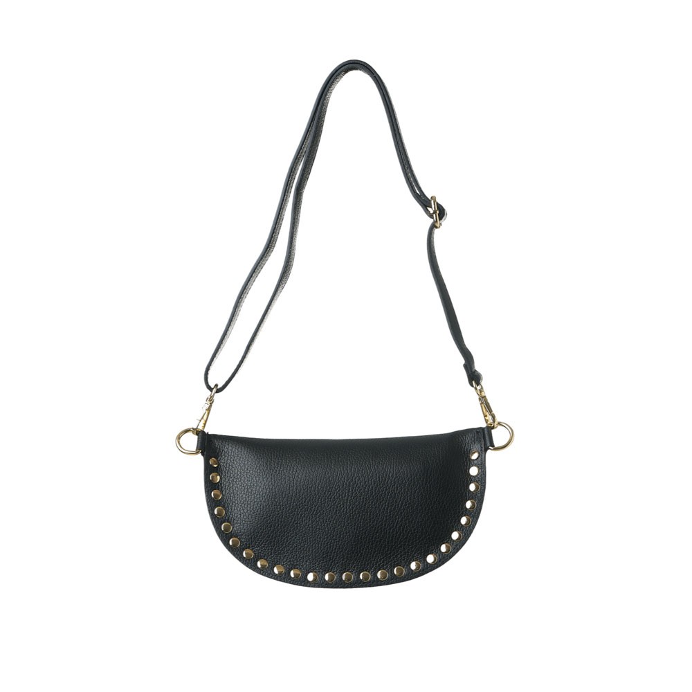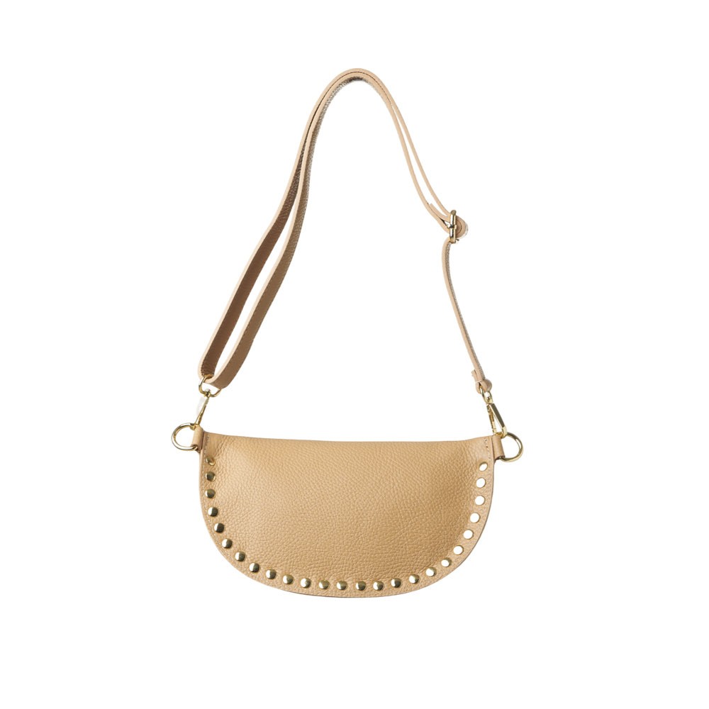 Δερμάτινη μπανάνα σε μινιμαλιστικό design με εσωτερική επένδυση και λεπτομέρειες σε νίκελ.