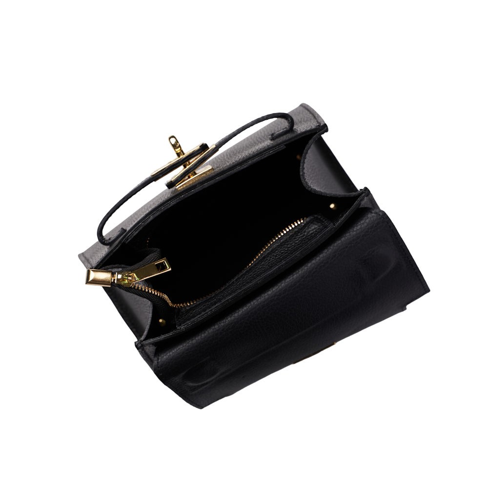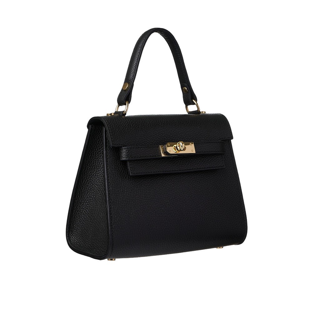 Γυναικεία δερμάτινη τσάντα χειρός, Ιταλικής κατασκευής, με κομψή δομή και χρυσές μεταλλικές λεπτομέρειες που τονίζουν το διαχρονικό της στυλ. Με διαστάσεις 23 x 12 x 19 εκ. (Μήκος x Πλάτος x Ύψος), αποτελεί ένα elegant και πρακτικό μοντέλο για καθημερινή χρήση αλλά και πιο επίσημες εμφανίσεις. Διαθέτει κύρια θέση με φερμουάρ, εσωτερική τσέπη για μικροαντικείμενα και δερμάτινη φόδρα, που προσφέρει ανθεκτικότητα και ιδιαίτερη αίσθηση ποιότητας. Το χαρακτηριστικό καπάκι με μεταλλικό περιστροφικό κλείσιμο προσθέτει ασφάλεια και κομψότητα. Συνοδεύεται από αποσπώμενο και ρυθμιζόμενο ιμάντα, επιτρέποντας να φορεθεί και στον ώμο ή χιαστί, ενώ το σταθερό χερούλι προσφέρει άνετο κράτημα στο χέρι. Ένα σικ και εκλεπτυσμένο κομμάτι που ολοκληρώνει κάθε εμφάνιση με χαρακτήρα και φινέτσα.
