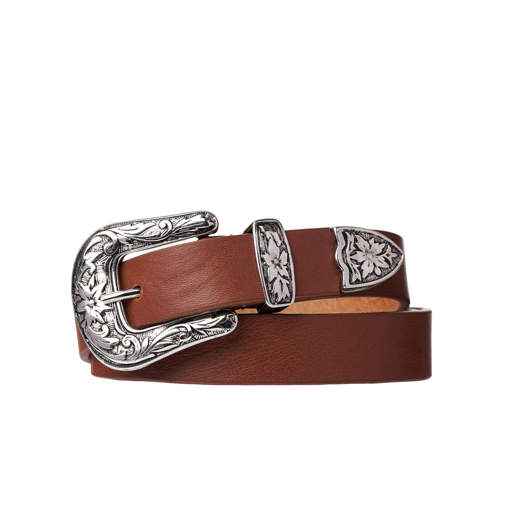Western-style ζώνη με ανάγλυφη μεταλλική αγκράφα και διακοσμητικές λεπτομέρειες. Ένα statement κομμάτι που δίνει χαρακτήρα και ξεχωριστό ύφος σε casual και fashion εμφανίσεις.