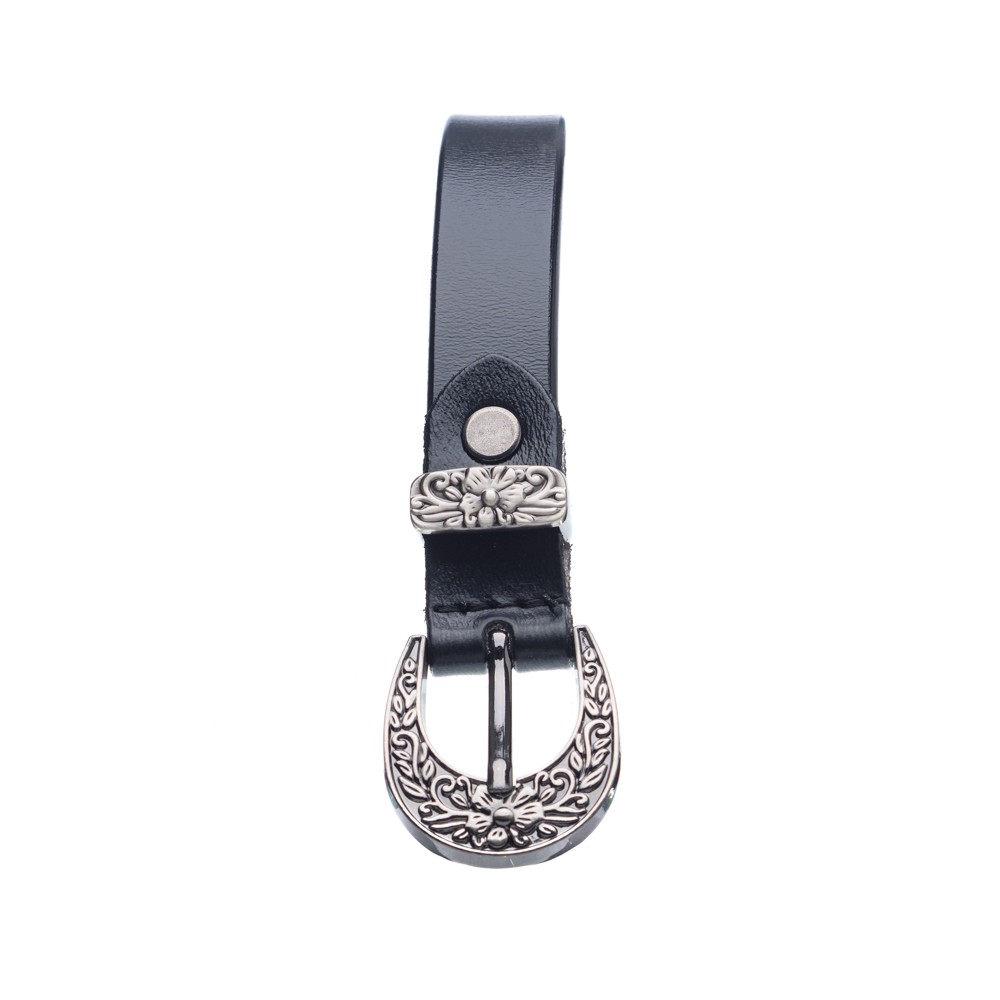 Γυναικεία δερμάτινη ζώνη, Ιταλικής κατασκευής, πλάτος: 2 εκ, ασημί μεταλλική αγκράφα στρόγγυλη με ασημί ανάγλυφες λεπτομέρειες, εσωτερικά και εξωτερικά δέρμα ματ, μπορεί να κοντύνει εύκολα ξεβιδώνοντας μια βίδα, με θηλιά για καλύτερο κράτημα.