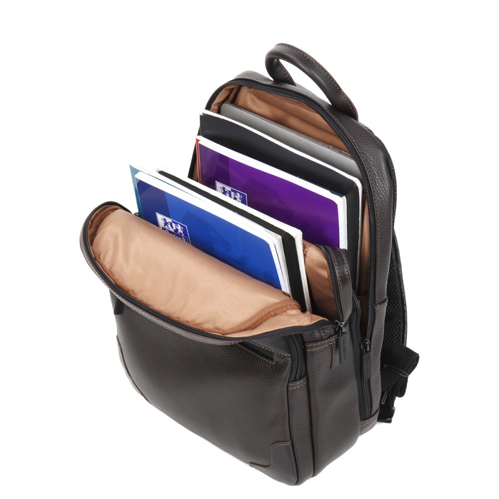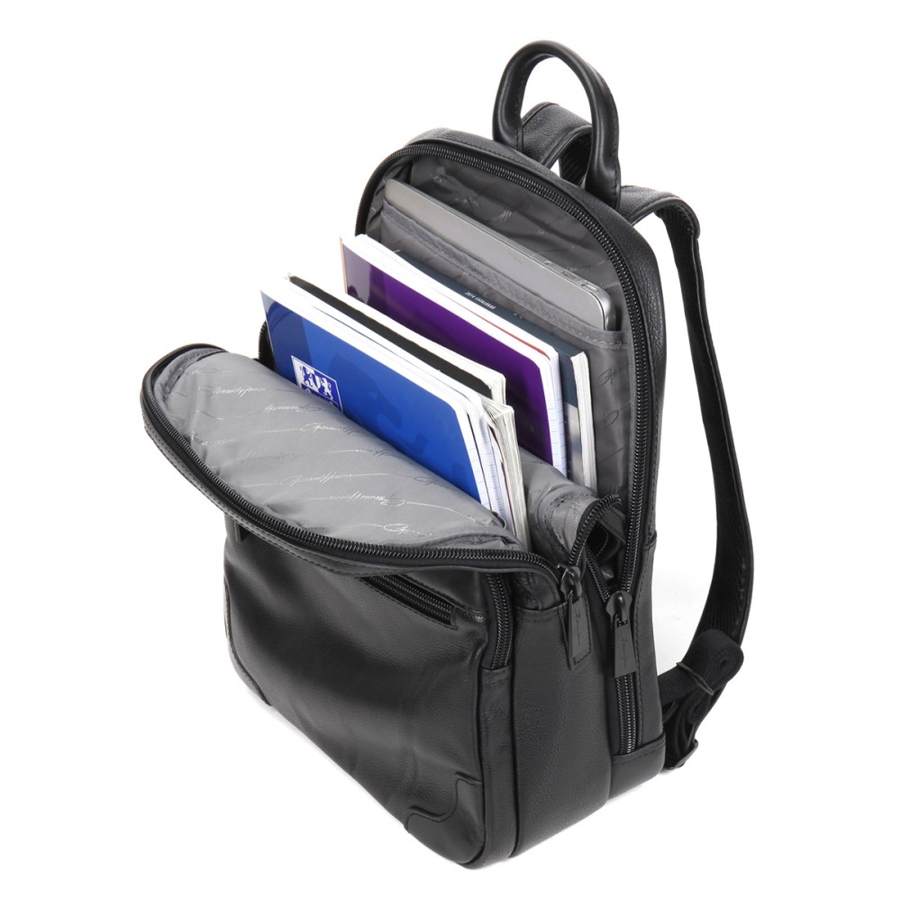 With amazing leather a backpack spacious and ergonomic for all hours of the day.