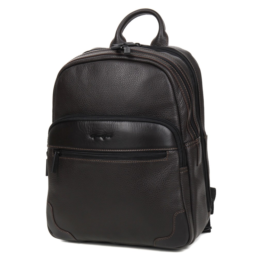Men's leather backpack, of French origin, dimensions 30 × 14 × 39 (LxWxH), two large outer pockets that lock with zipper, two main places that lock with double zipper, inner back pocket that secures with zipper, inner partition, inner case for laptop with special lining, adjustable straps for holding on the shoulders with lining for comfort, support strap in a suitcase for travel and special lining with foam on the back, a handle for holding in hand, plastic support legs.