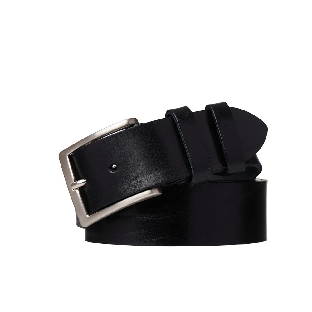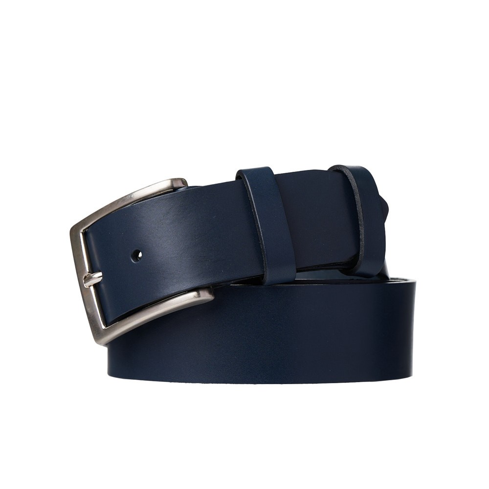 Classic leather belt for jeans, made of 100% genuine leather, with a metal buckle and clean lines. Ideal for casual or smart casual looks.