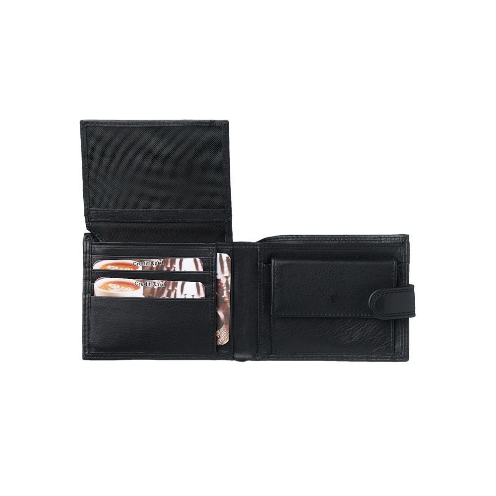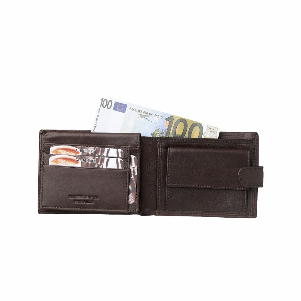 Men's leather wallet that secures with a snap button, of Italian origin, dimensions 12.4 x 9.7 (LxH), soft leather, two compartments for banknotes, zipper behind the banknote compartments, 9 credit card compartments, compartment behind the card and coin compartments ideal for ID, one compartment with a mesh for photos, coin compartment that secures with a metal clasp, also available in a gift box.