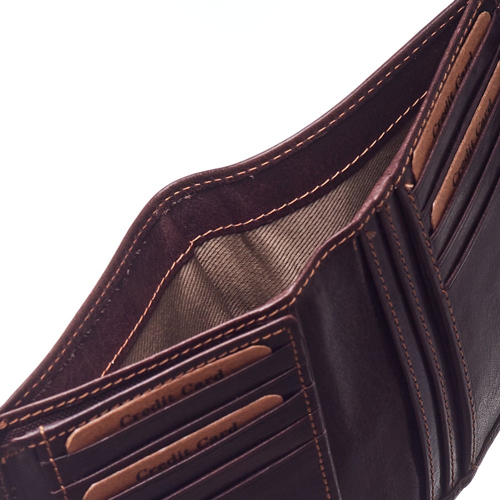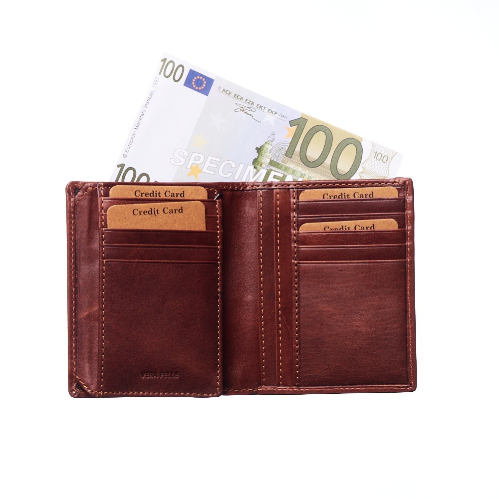 Men's wallet LUCIANO POLINI, of italian origin, dimensions 9,5 x 12(LxH), hard leather, place for banknotes, 12 card cases, places behind the card cases, two slides for photos - diploma or ID, LUCIANO POLINI badge in front, available in a gift box.