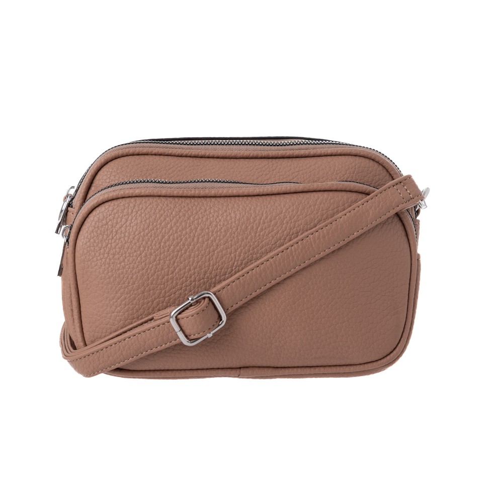 Women's synthetic shoulder bag, of italian origin, dimensions 25 x 10 x 17 (LxWxH), two zipped compartments, external zipped front compartment, external zipped rear pocket, internal rear zipped pocket with zipper, fabric lining, removable and adjustable strap for shoulder or cross body.