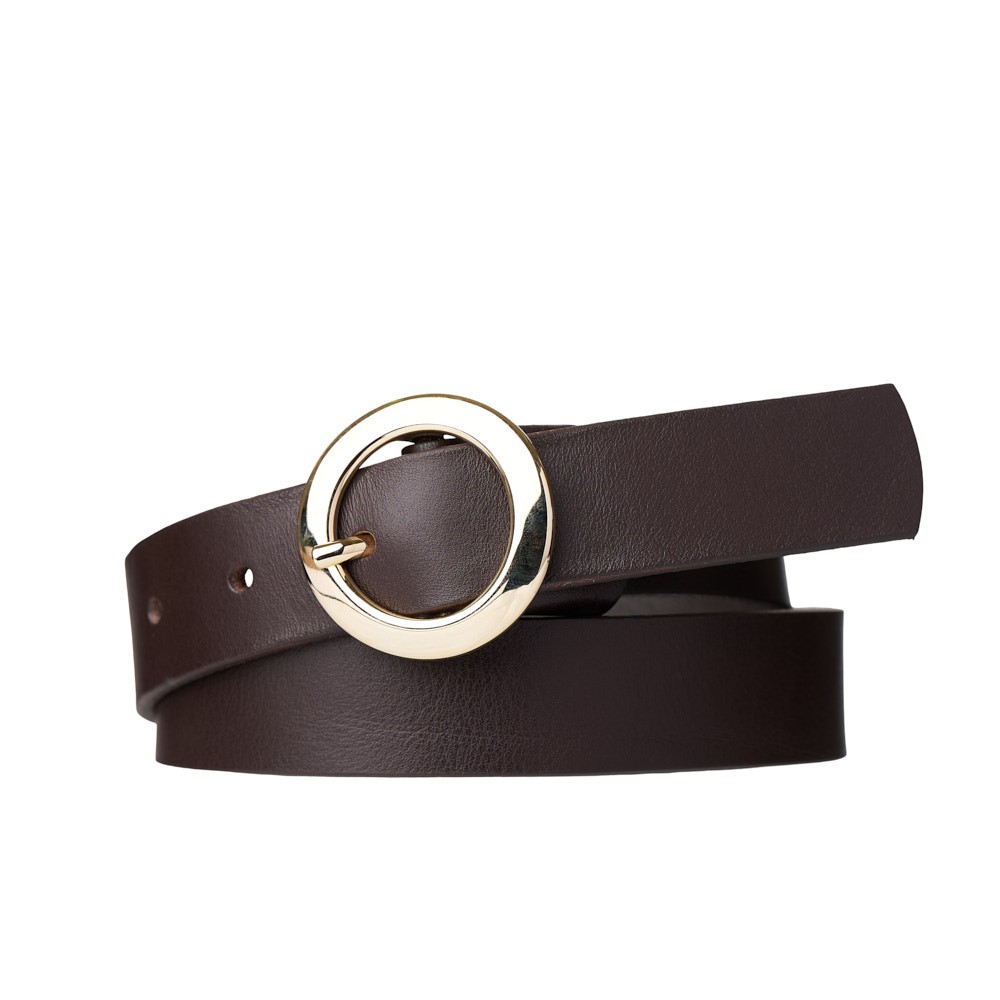 We select the best leathers and collaborate with Italian craftsmen to create belts that stand out for their quality and aesthetics. Women's leather belt with a width of 3 cm. handmade in Italy, with a minimal design and an impressive round buckle in gold tone. Its clean line and smooth texture of the leather create an elegant result that instantly upgrades any look. The construction is stable, fits ideally with dresses, skirts and high-waisted trousers, offering a modern and sophisticated finish to the outfit. It is delivered in an elegant fabric pouch, ideal for a gift.