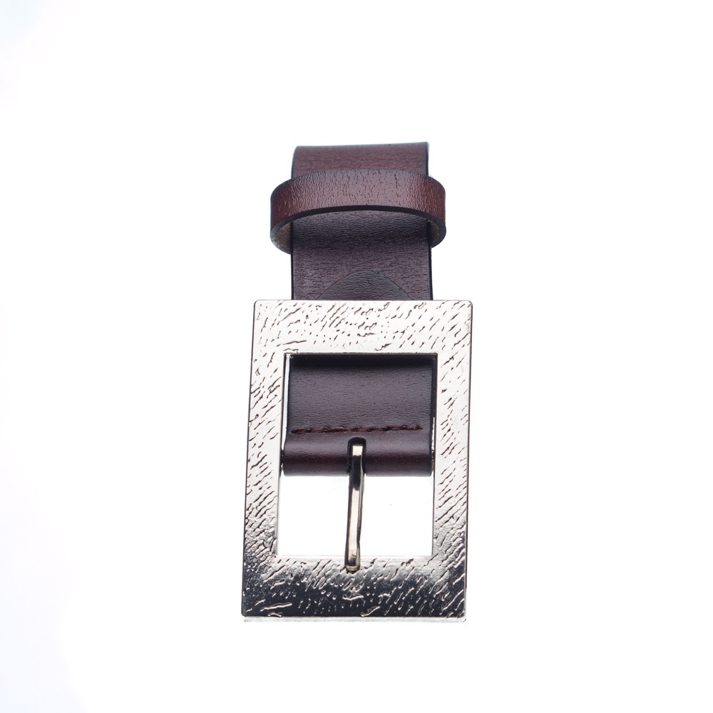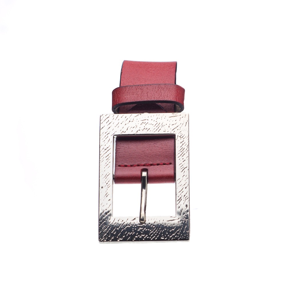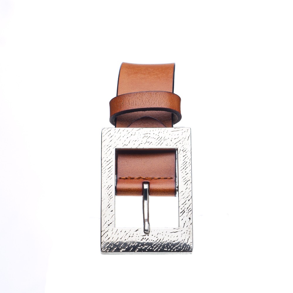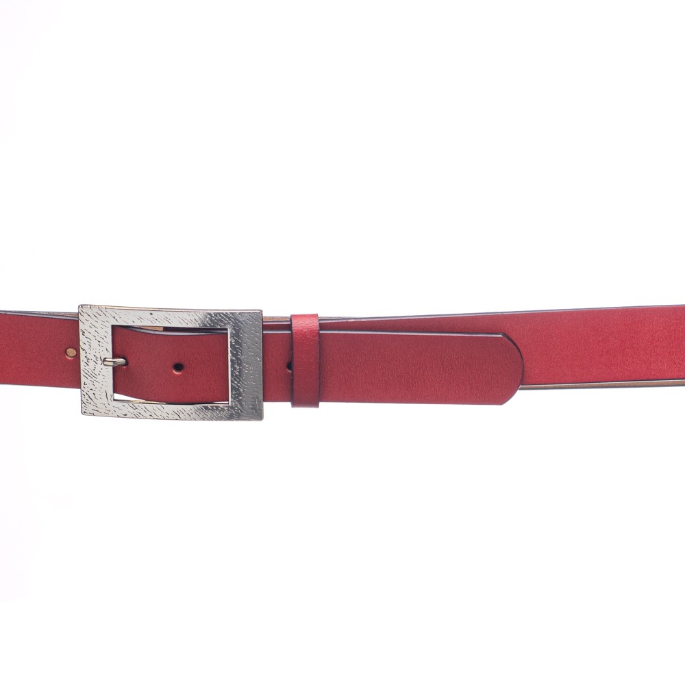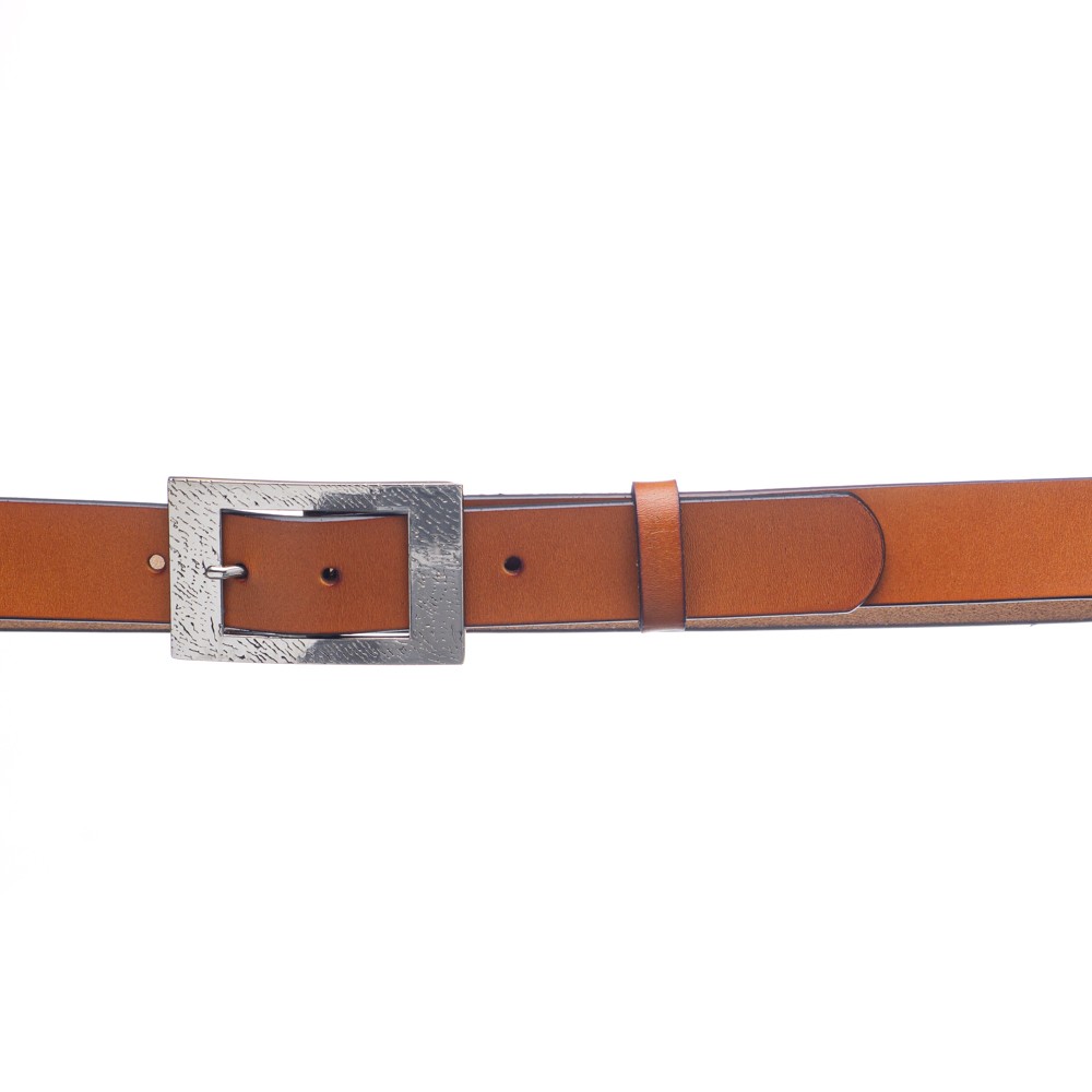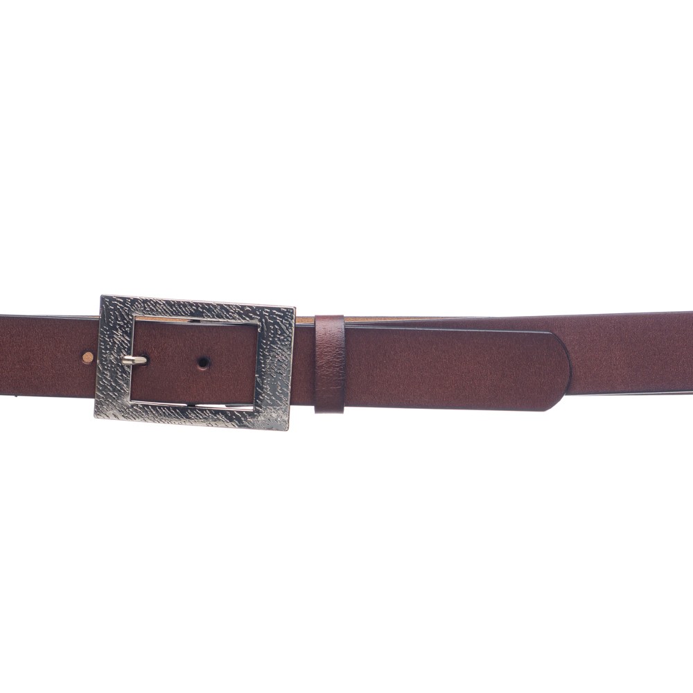 Women's leather belt, Italian made, width: 3.5 cm, silver metal buckle with pattern, inner and outer matte leather, can be easily shortened by unscrewing a screw, with a loop for better grip.