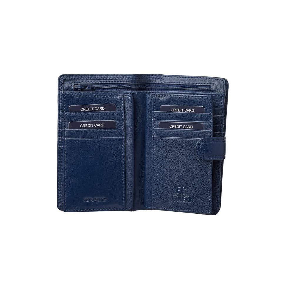 Enrico Coveri women's wallet, dimensions 16 x 10 cm (LxH), made of soft genuine leather. It has two compartments for banknotes, one of which is secured with a zipper, a spacious compartment for coins with a zipper, as well as additional internal space for storing small items. It includes a total of 20 card slots, two compartments with a transparent window for photos, a diploma or ID and multiple internal slots for documents or receipts. It secures with a metal button, while the Enrico Coveri logo appears embossed on the outside. Available in a gift box.